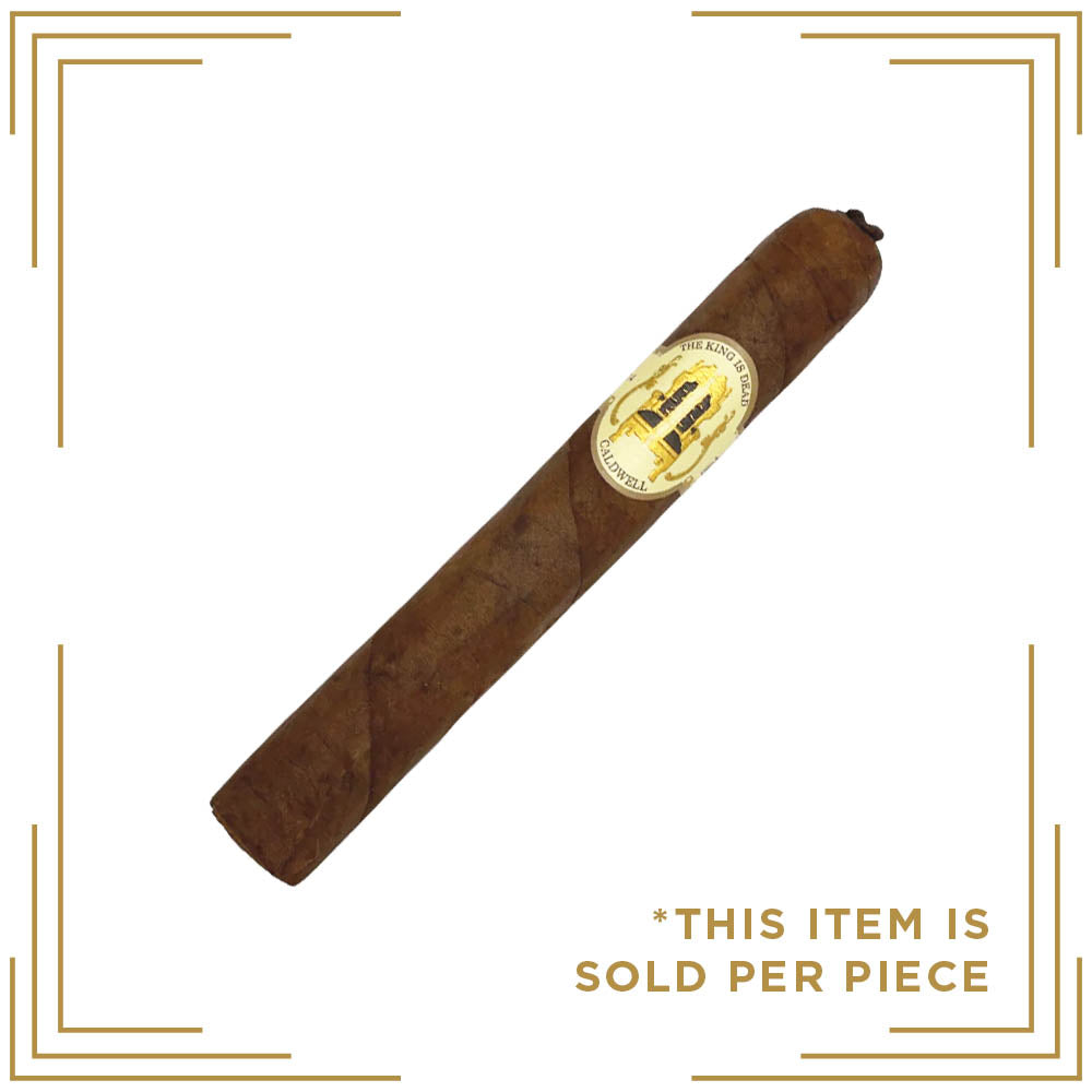 The Caldwell The King is Dead Premier is a distinguished premium cigar, expertly handcrafted in the Dominican Republic. Showcasing a rare Negrito wrapper, this blend is paired with a Dominican Corona binder and meticulously aged long-fillers for a complex, well-balanced experience. Upon lighting, the cigar opens with smooth notes of milk chocolate, gradually deepening into rich flavors of coffee and spice. As the profile develops, layers of cedar, earth, and subtle sweetness emerge, offering a dynamic and satisfying smoke. With a consistent nutty sweetness and an even, dependable burn, this cigar exemplifies both indulgence and craftsmanship.
